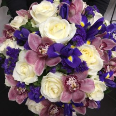 Состав и вид цветочного букета может слегка изменяться и заменяться на идентичный, если какой-либо из видимых на изображении вида цветов в определённое время года (сезона) не является доступным. Основные особенности дизайна букета будут сохранены как визуально, так и в плане цены.