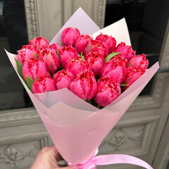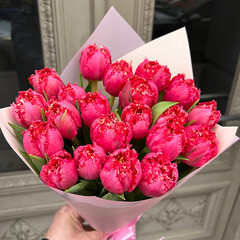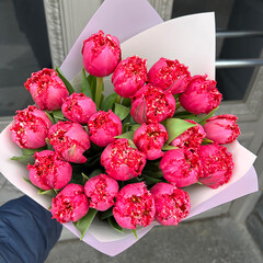 Bouquet composition 21 tulips, decorative packaging, satin ribbon, You can change the number of flowers in the bouquet.